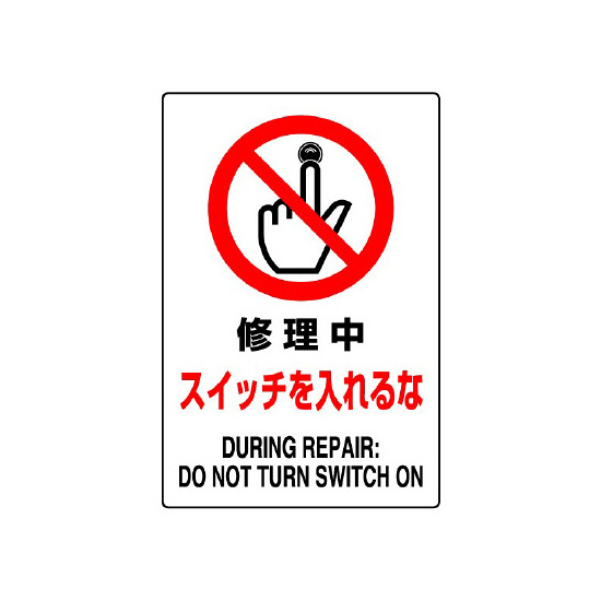 商品説明:JIS規格安全標識 ボード 修理中スイッチ入れるな 450×300 (802-221A)