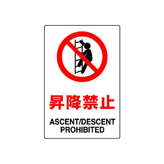 商品説明:JIS規格安全標識 ステッカー 昇降禁止 450×300 (802-122A)