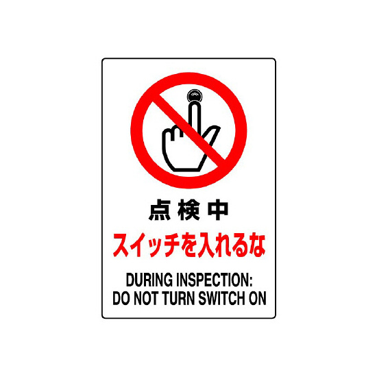 商品説明:JIS規格安全標識 ステッカー 点検中スイッチ入れるな 450×300 (802-212A)