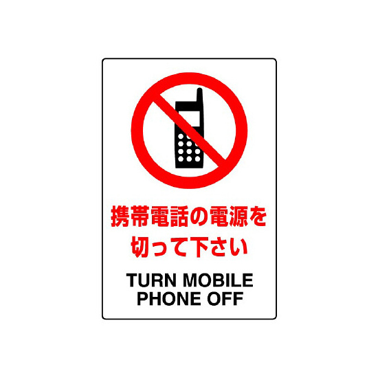 商品説明:JIS規格安全標識 ステッカー 携帯電話の電源を切って下さい 450×300 (802-292A)