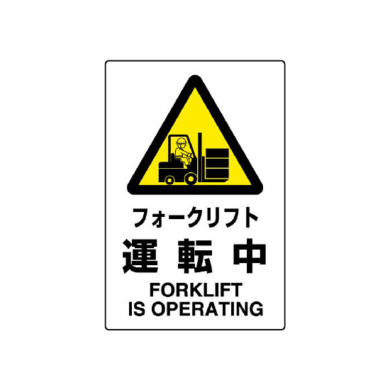 商品説明:JIS規格安全標識 ボード 450×300 フォークリフト運転中 (802-531A)