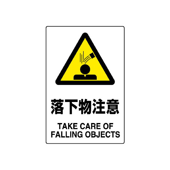 商品説明:JIS規格安全標識 ステッカー 450×300 落下物注意 (802-442A)