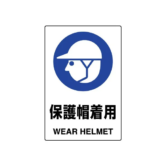- 青の安全表示と保護帽のピクトグラムで直感的に認識しやすく、工場や建設現場、作業エリア入口などの保護具着用表示として役立ちます。