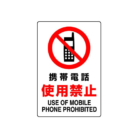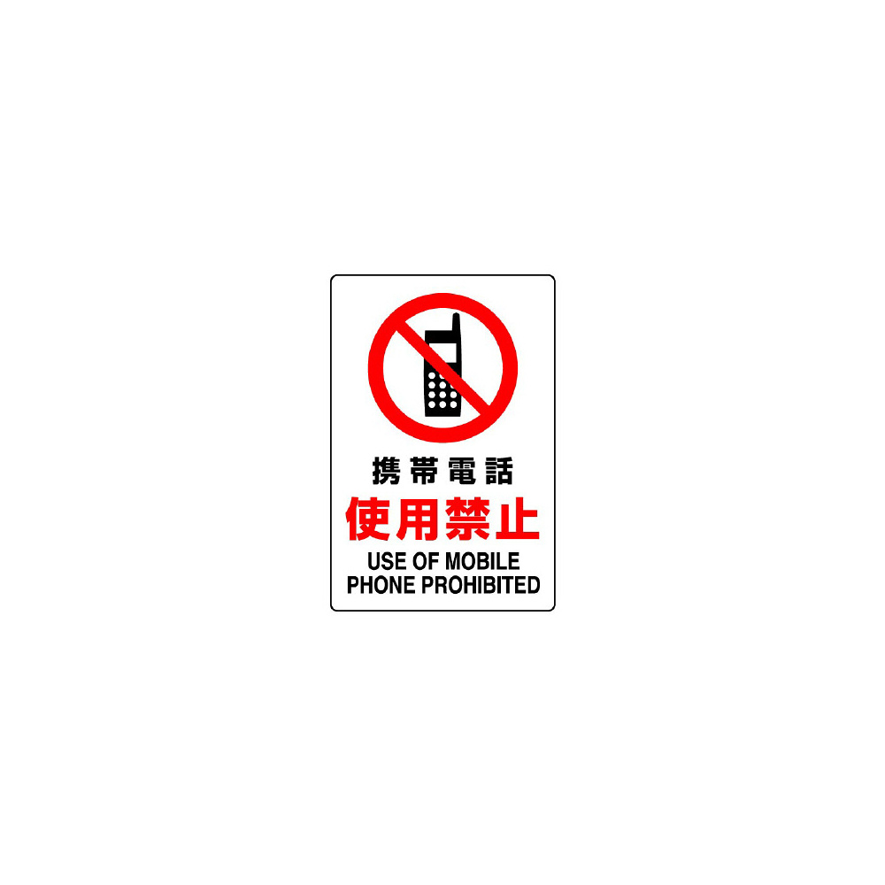 商品説明:JIS規格安全標識 ステッカー 携帯電話使用禁止 300×200 (803-102A)
