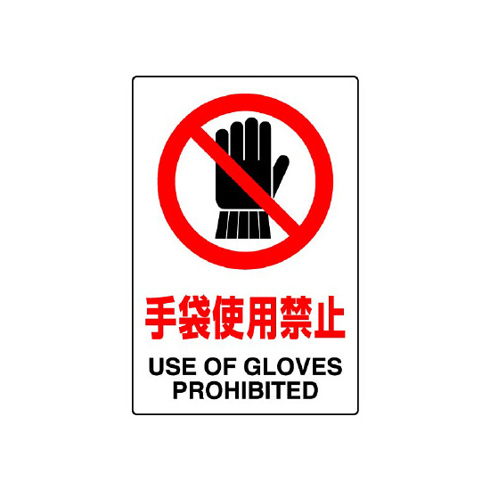 商品説明:JIS規格安全標識 (ステッカー) 手袋使用禁止 5枚入 (803-34B)