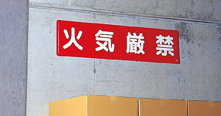 火気の使用禁止を、遠くからでも伝えやすい文字標識。