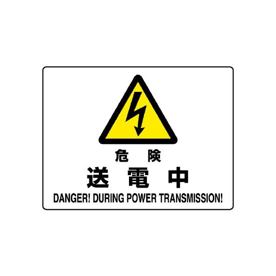 - 警告マークと「危険 送電中」の表示で直感的に認識しやすく、電気設備や送電関連設備まわりの危険表示として役立ちます。