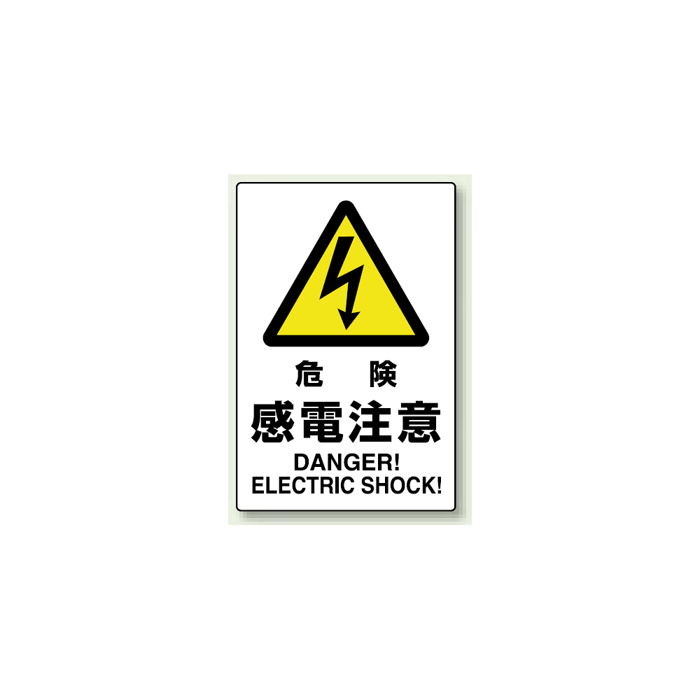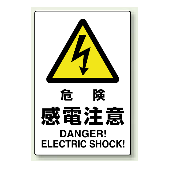 商品説明:危険 感電注意 ステッカー 450×300 (802-502A)
