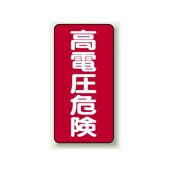 高電圧による危険を、赤地で目立って伝えられる縦型ステッカー。