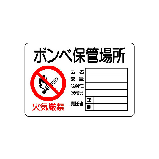 商品説明:ボンベ保管場所標識 鉄板 300×450 (804-42B)