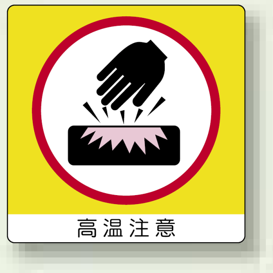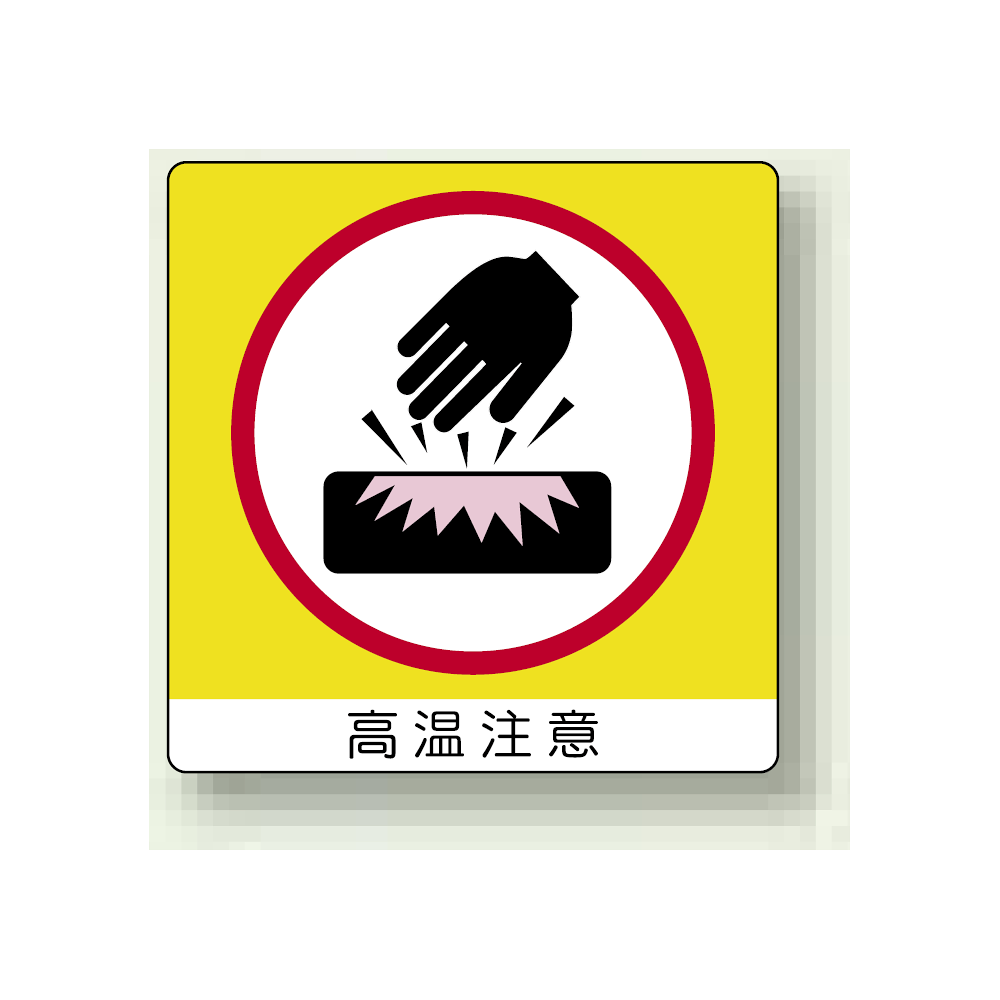 商品説明:高温注意 50mm角アルミステッカー 10枚1組 (838-14K)
