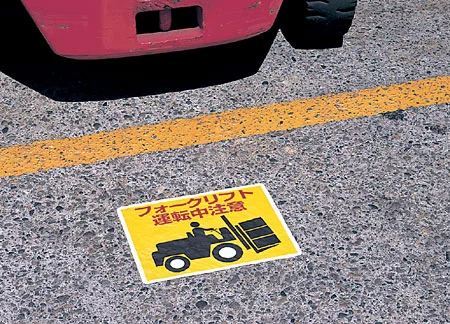 ■使用例/路面貼用ステッカー フォークリフト運転中注意