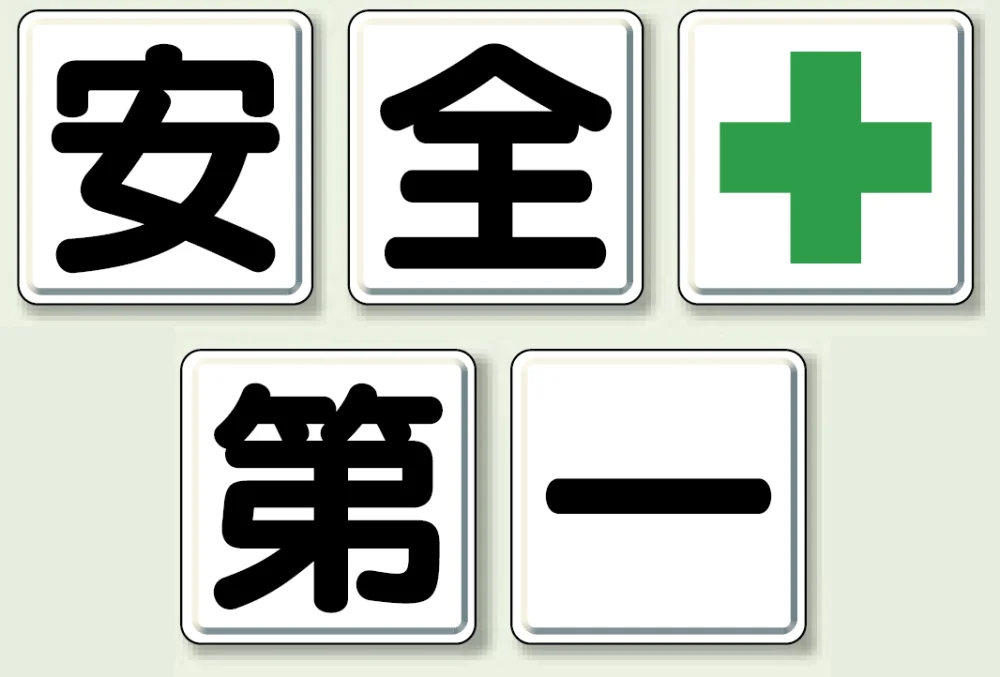 - 職場や作業現場で「安全第一」の意識を分かりやすく共有したい場所に適した文字標識です。