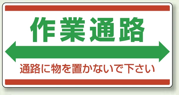 作業通路であることと、通路に物を置かない注意をまとめて伝えられる標識。