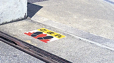 足形デザインで停止位置を示しやすい、路面貼り用ステッカー。