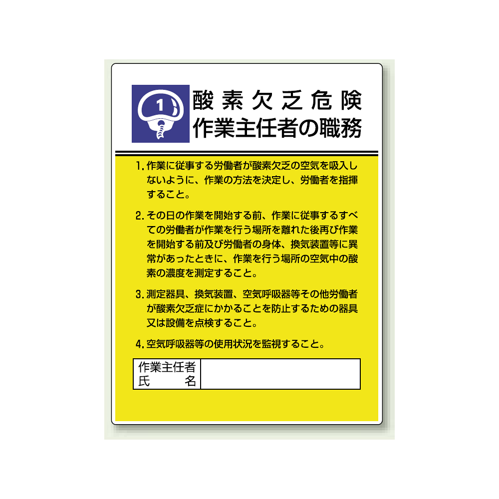 商品説明:酸素欠乏危険 「作業主任者職務表示板」 (808-01)