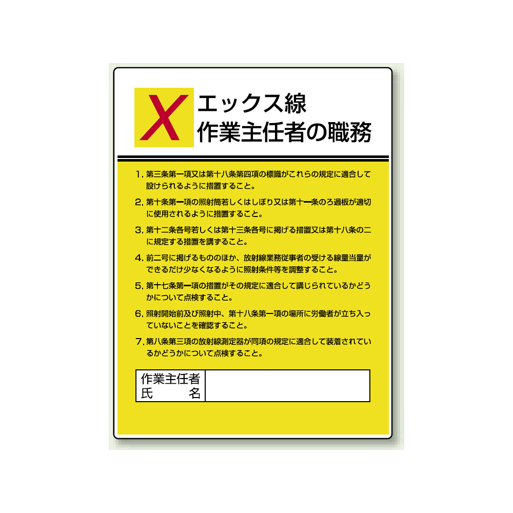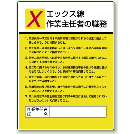 商品説明:エックス線 「作業主任者職務表示板」 (808-11)