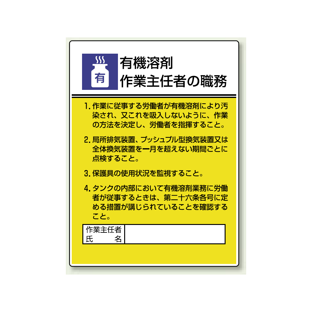 商品説明:有機溶剤 「作業主任者職務表示板」 (808-15A)