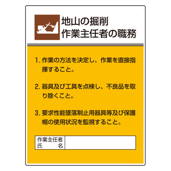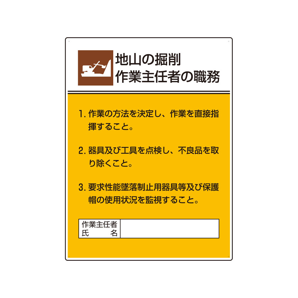 商品説明:地山の堀削 「作業主任者職務表示板」 (808-20A)