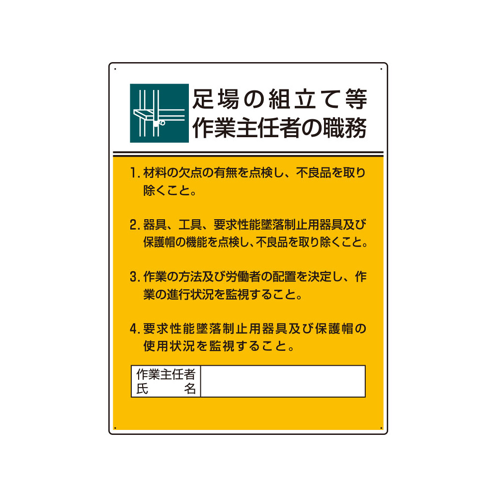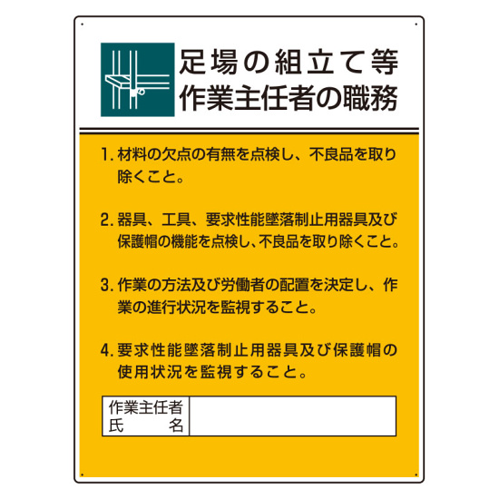 商品説明:足場の組立て等 「作業主任者職務表示板」 (808-21B)
