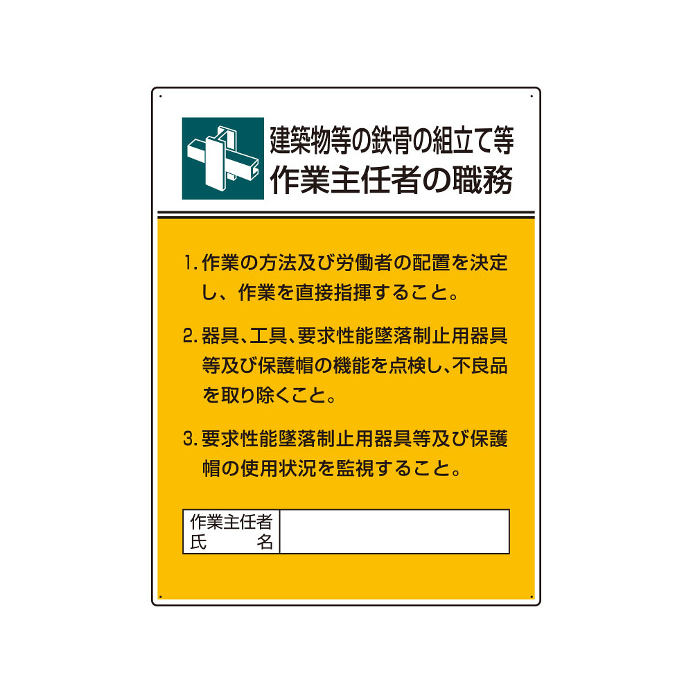 - 建築物等の鉄骨の組立て等 「作業主任者職務表示板」 (808-22A)
