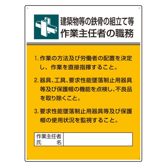 商品説明:建築物等の鉄骨の組立て等 「作業主任者職務表示板」 (808-22A)