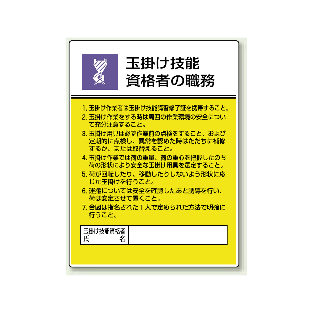 商品説明:玉掛け技能 「作業主任者職務表示板」 (808-25)