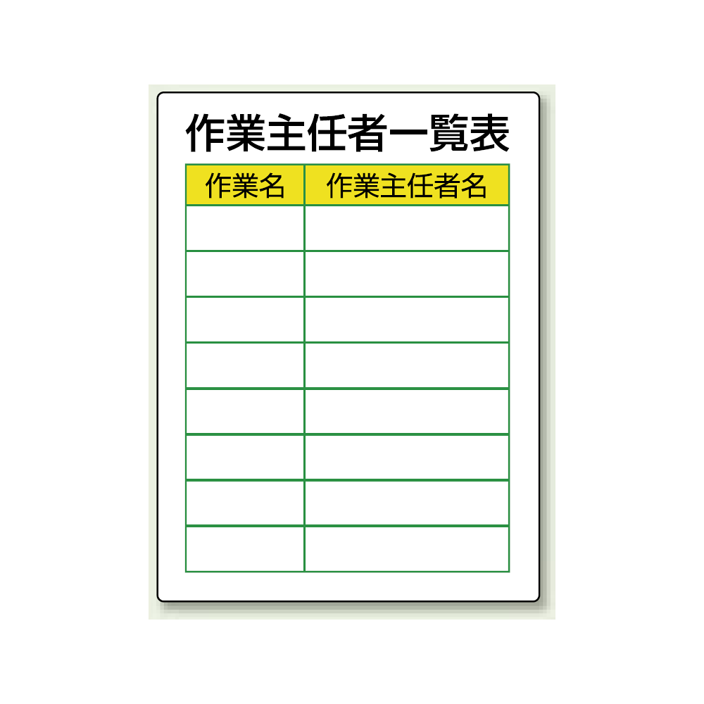 商品説明:作業主任一覧表 エコユニボード 600×450 (808-30)