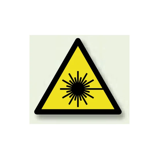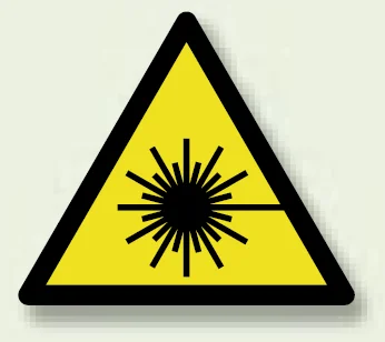 レーザ危険を、シンプルな警告マークで分かりやすく伝えるステッカー。