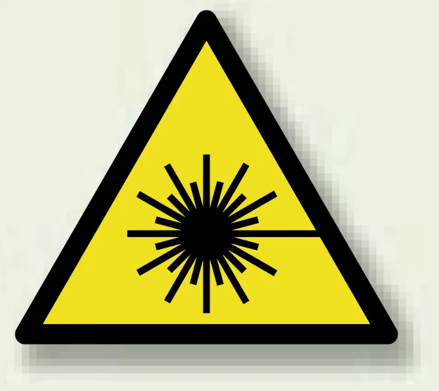小型サイズで貼りやすい、レーザ危険を伝える警告マークステッカー。