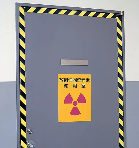 放射線を発する装置の出入り口に!