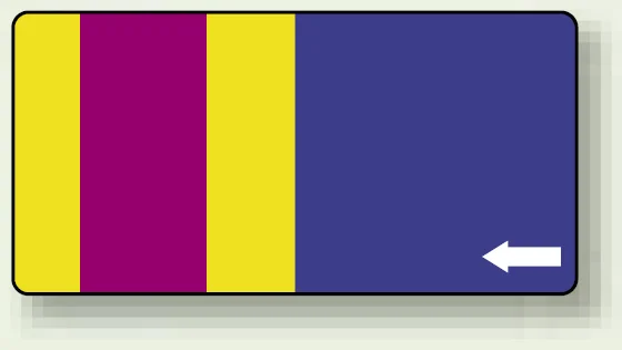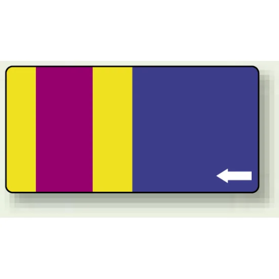 - 色帯と矢印で視認しやすく、配管まわりの管理表示や方向表示として役立ちます。