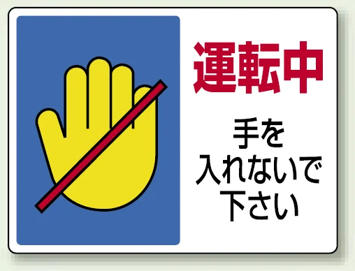- 機械の運転中に手を入れないよう、明確に周知したい場面に適した安全標識です。