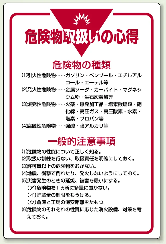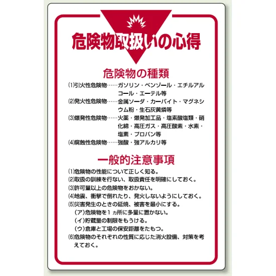 管理表示板 900×600 危険物取扱いの心得 (808-41) の商品詳細