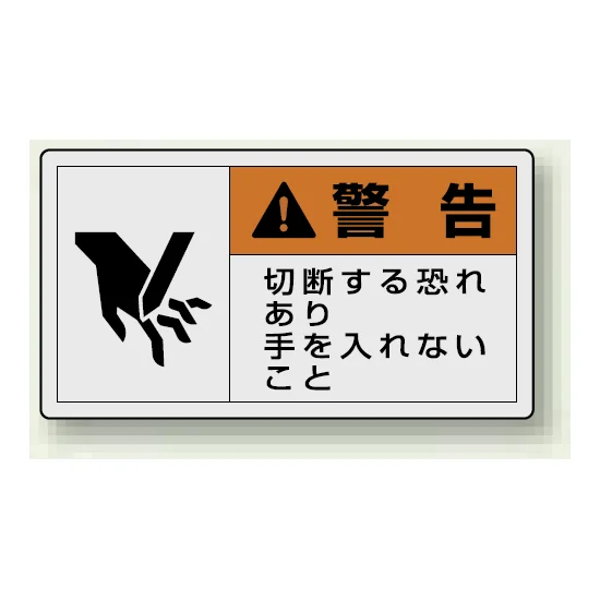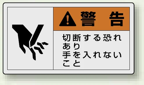 切断によるケガの危険を、ひと目で分かりやすく伝えるPL警告表示ラベル。