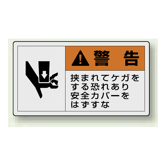 - 表示内容:警告 挟まれてケガをする恐れあり安全カバーをはずすな