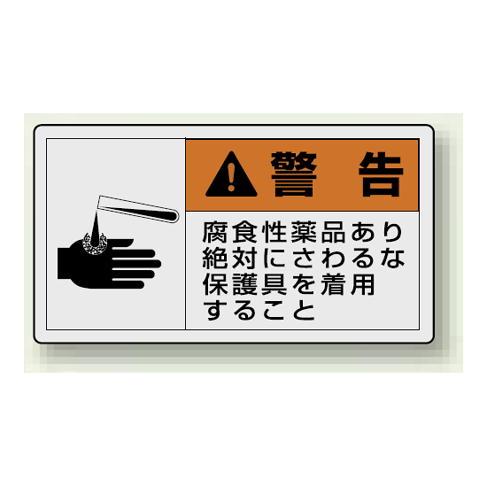 PL警告ラベル ヨコ型ステッカー 腐食性薬品あり絶対に触るな保護具を着用すること (10枚1組) サイズ:(大)60×110mm (846-09)