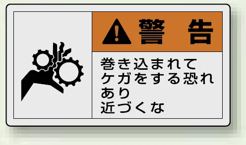 - ギアや可動部まわりで、巻き込まれによるケガを防ぎたい場所に適した警告表示ラベルです。