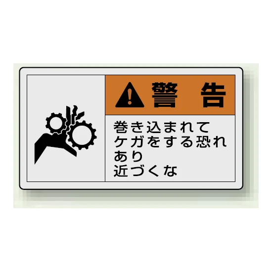 PL警告ラベル ヨコ型ステッカー 巻き込まれてケガをする恐れあり近づくな (10枚1組) サイズ:(小)30×55mm (846-24)