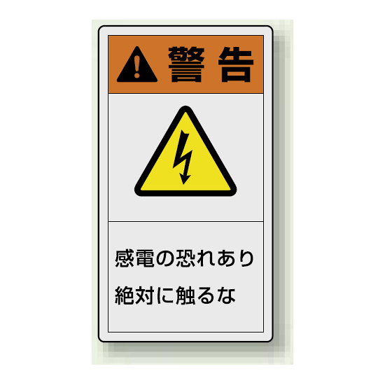 PL警告ラベル タテ型ステッカー 感電の恐れあり絶対に触れるな (10枚1組) サイズ:(大)110×60mm (846-41)