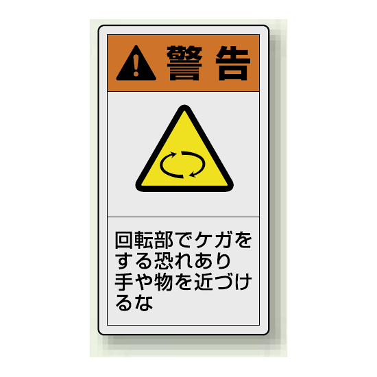 PL警告ラベル タテ型ステッカー 回転部でケガをする恐れあり絶対に触れるな (10枚1組) サイズ:(大)110×60mm (846-42)