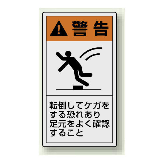PL警告ラベル タテ型ステッカー 転倒してケガをする恐れあり足元をよく確認すること (10枚1組) サイズ:(大)110×60mm (846-51)