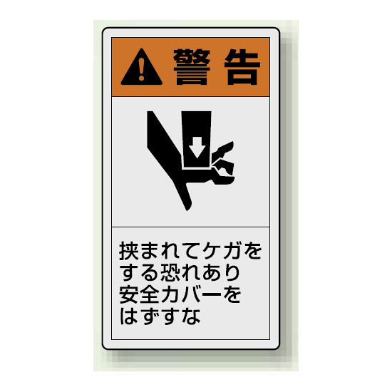 - 表示内容:警告 挟まれてケガをする恐れあり安全カバーをはずすな