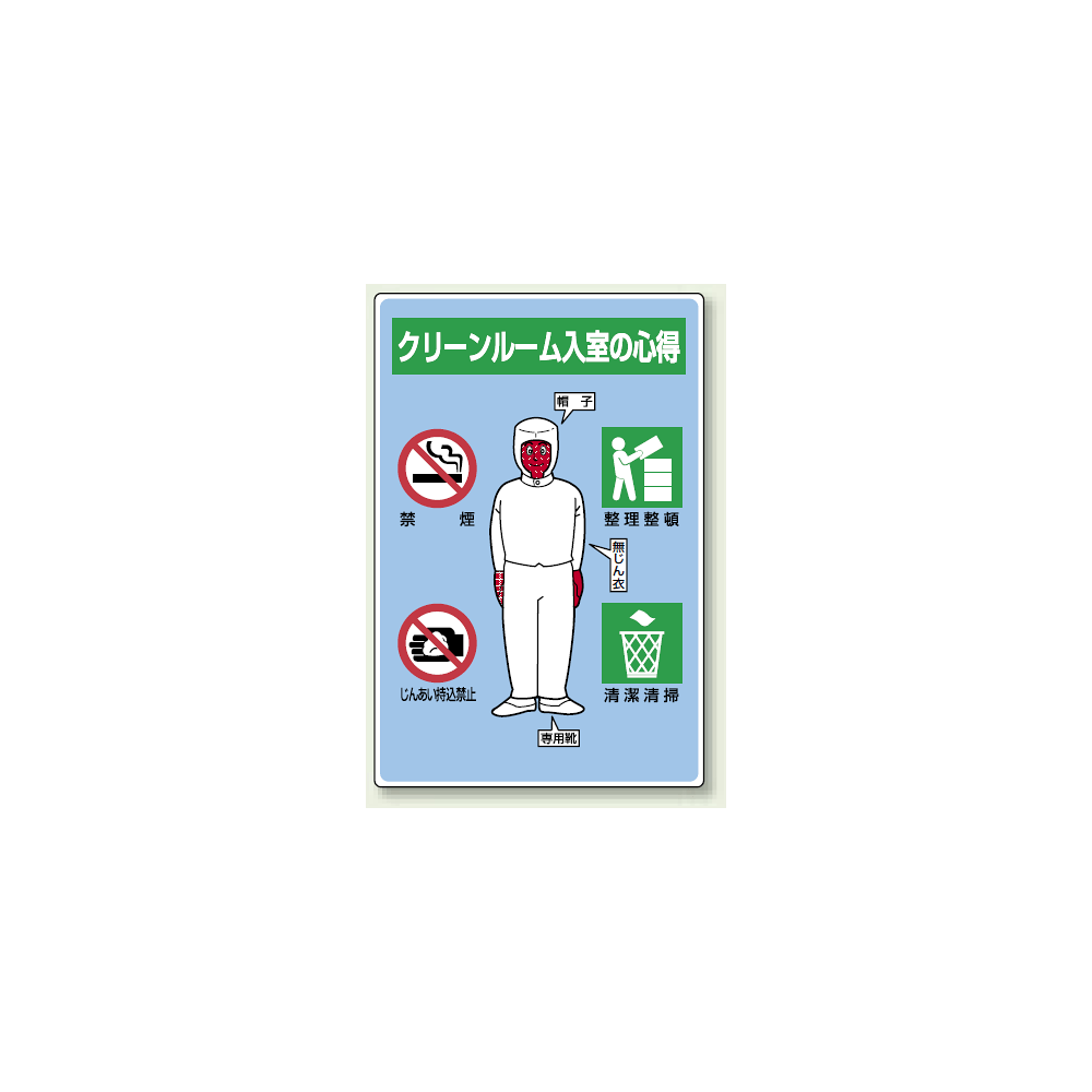 クリーンルーム入室の心得 全身イラスト エコユニボード 450×300 (816-41A)