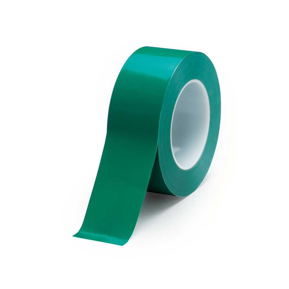商品説明:クリーンルーム用防じんラインテープ (強粘着・セパ無) 幅50mm×50m巻 カラー:緑 (864-20A)