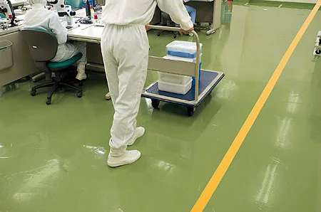 - 電子機器や電子部品工場、研究所の試験室、病院の手術室、医薬品製造工場など、クリーンな環境が求められる場所に適したラインテープです。