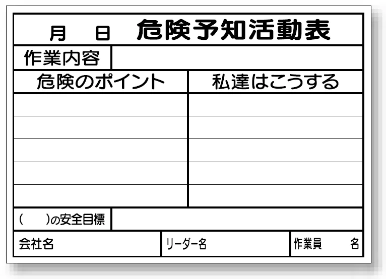 危険予知活動表 書き込み専用用紙 A4サイズ (1冊25枚綴) (320-29) の商品詳細