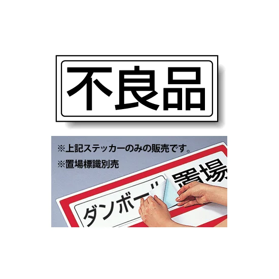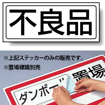 置場標識の空欄に貼って、不良品置場を分かりやすく表示できる専用ステッカー。