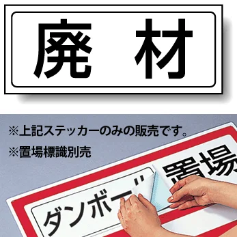 置場標識の空欄に貼って、廃材置場を分かりやすく表示できる専用ステッカー。