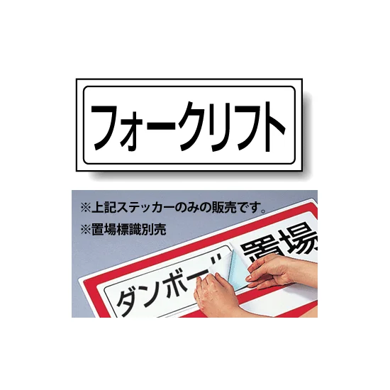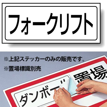 置場標識の空欄に貼って、フォークリフト置場を分かりやすく表示できる専用ステッカー。